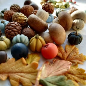 В нем я старалась передать всю атмосферу осеннего леса с желудями, желтеющими дубами, разноцветными листьями, белыми грибами и бледными поганками, мерцающими ягодками и, конечно, любимыми тыковками. Всем этим можно вдохновляться вечно🥰 и наборчик всегда будет приятным напоминанием🌲🌰🍄🍃🐿️
